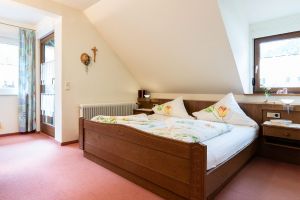 Unser Gästezimmer 4 viel Platz für zwei Personen. Eine gemütliche Sitzecke in einer kleinen Nische und der eigene Balkon laden zum Entspannen ein.