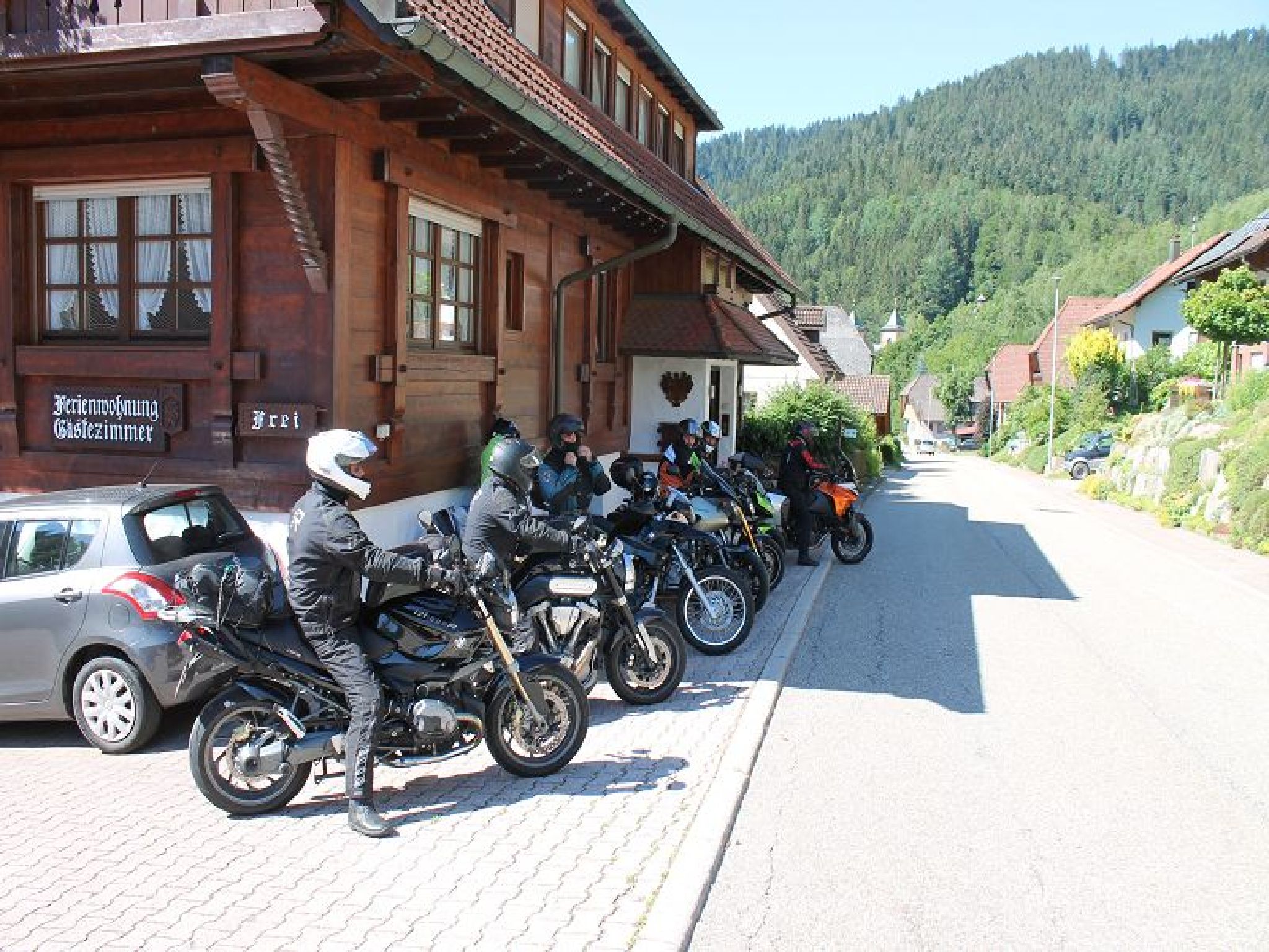 In den breiten Tälern schnurren die Reifen über den Asphalt, an den Hängen schmiegen sich die Kehren in den Wald, im Takt der Kurven schwillt das Geräusch des Motors auf und ab. Oben weitet sich der Blick über Waldberge, Täler, geht zu stillen Bergseen und sonnigen Hochflächen. Dazwischen ducken sich idyllisch wettergebräunte Schwarzwaldhöfe an den Hang. Weil eine solche Ballung an Traumstrecken auch für die hartgesottensten Motorradfahrer unmöglich an einem Tag zu bewältigen sind, bieten wir speziell auf Biker zugeschnittene Leistungen an.