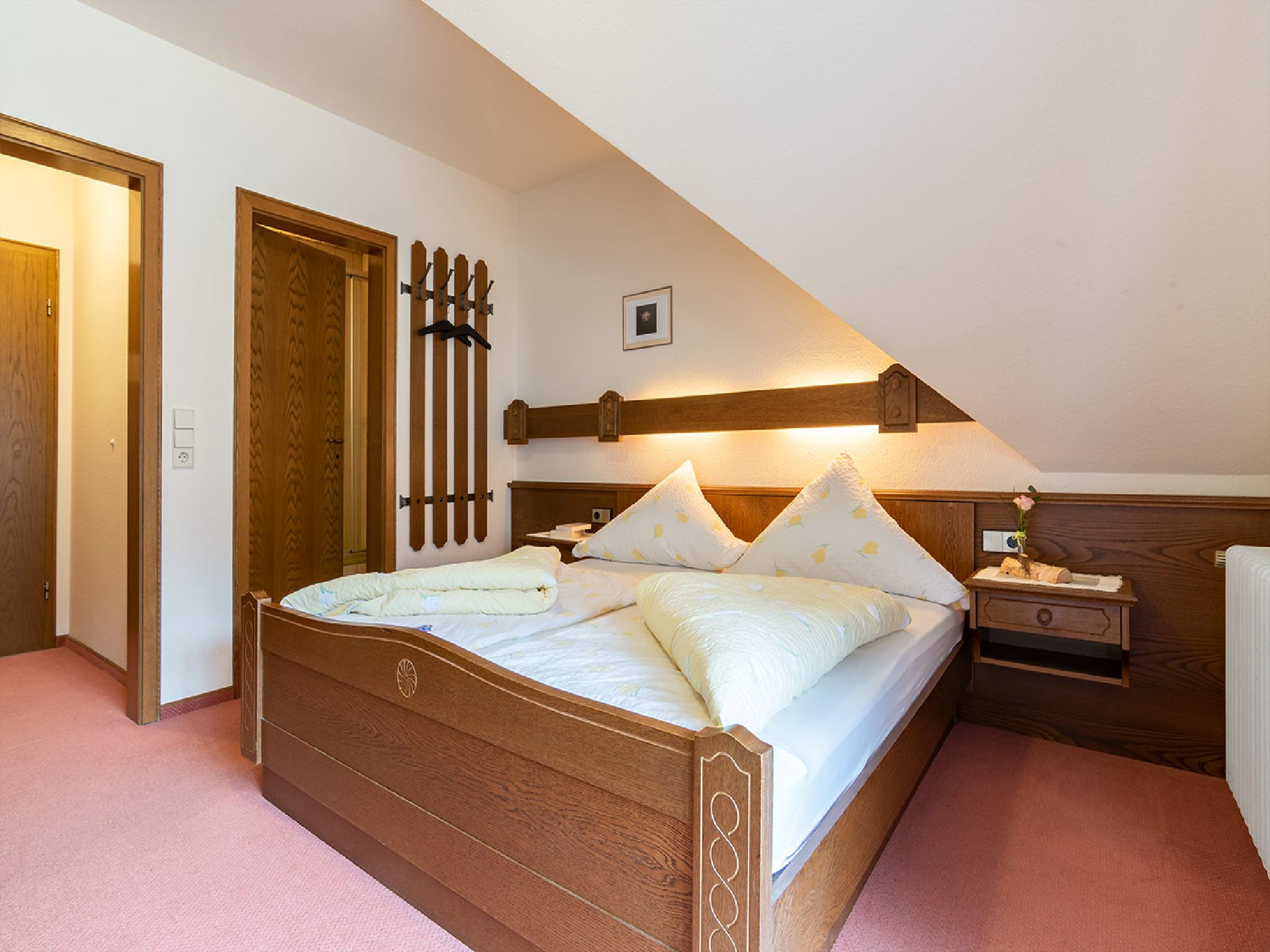 Unser Gästezimmer 2 bietet viel Platz für zwei Personen. Erholsamer Schlaf ist garantiert und auf dem Balkon können haben Sie einen herrlichen Blick auf unseren schönen Ort.