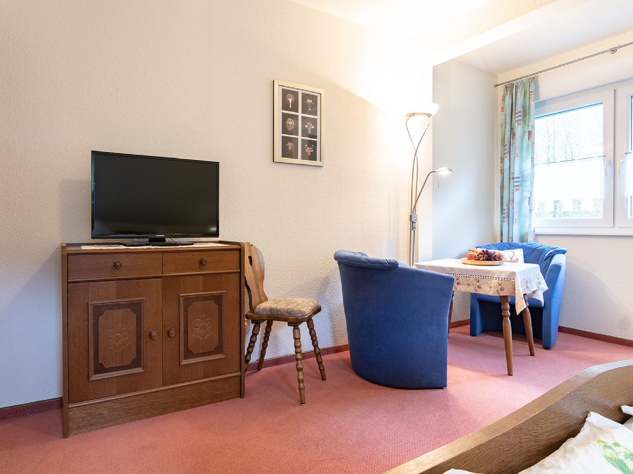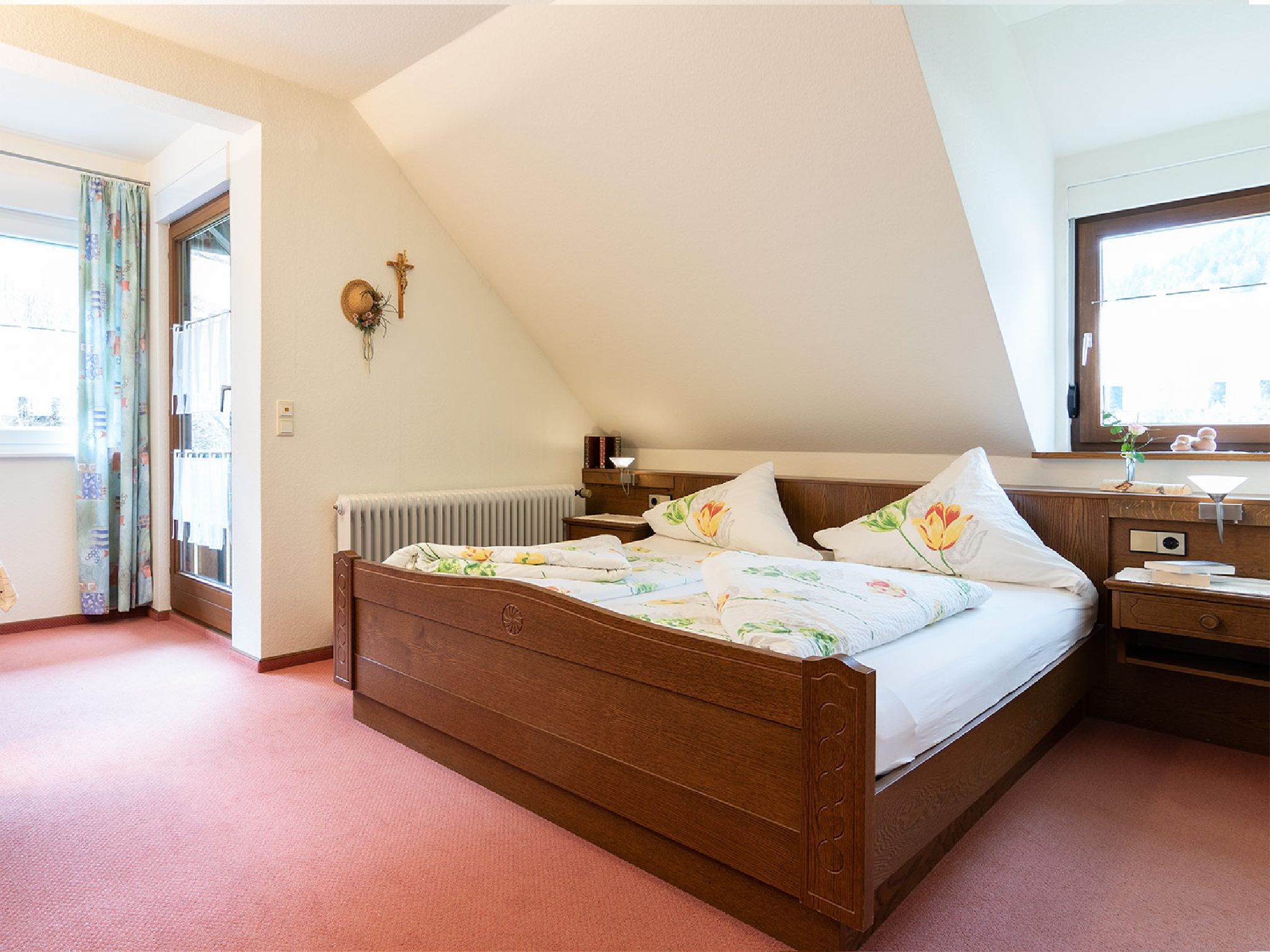 Unser Gästezimmer 4 viel Platz für zwei Personen. Eine gemütliche Sitzecke in einer kleinen Nische und der eigene Balkon laden zum Entspannen ein.