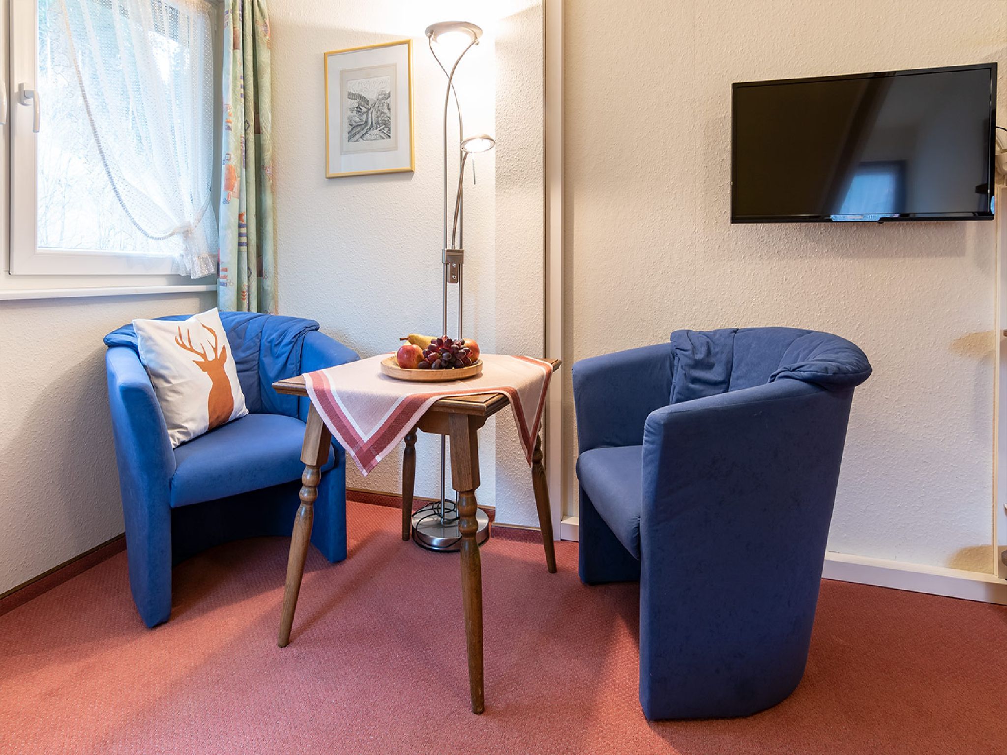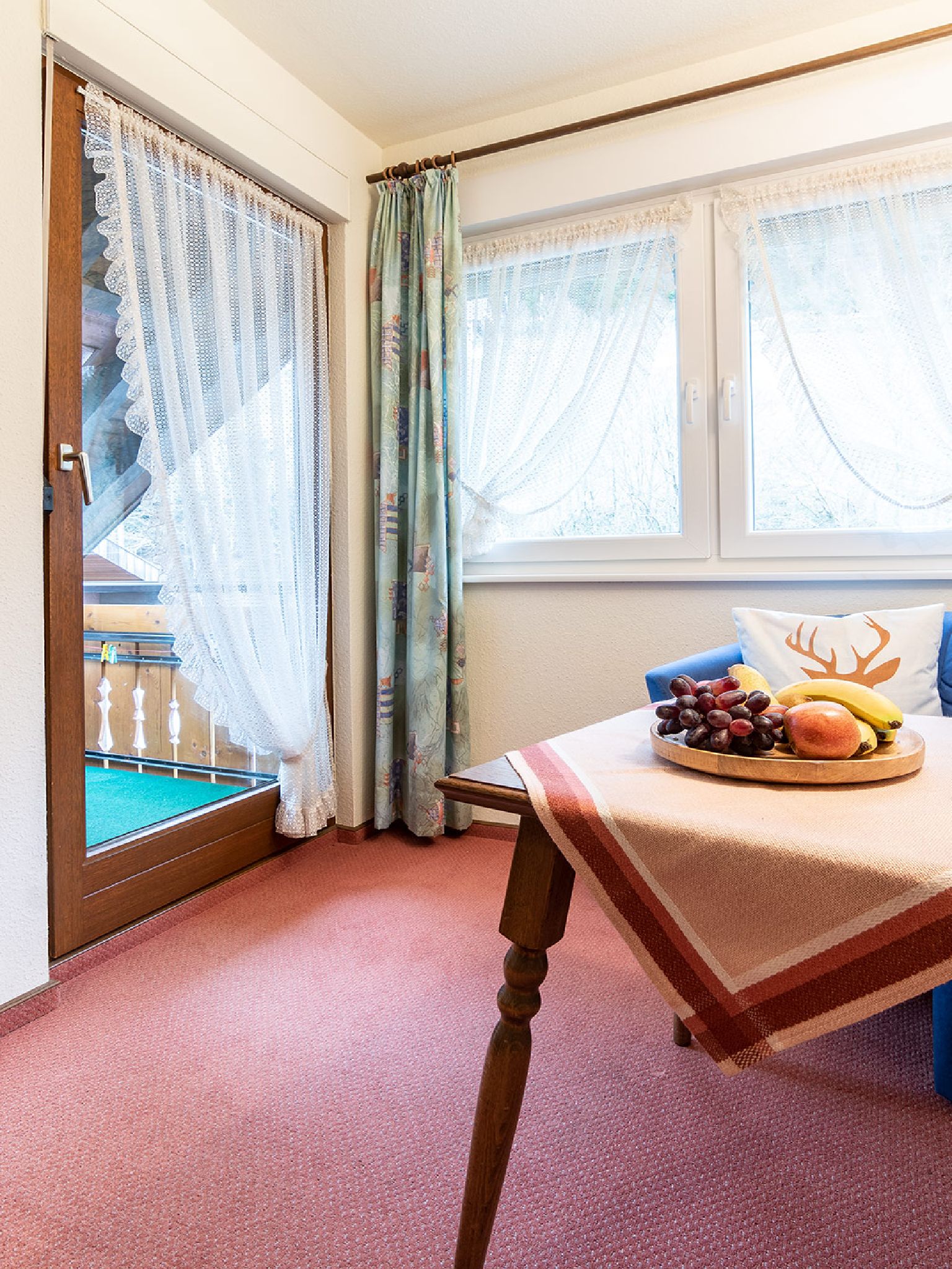 Auch unser Gästezimmer 5 viel Platz für zwei Personen. Eine gemütliche Sitzecke und der eigene Balkon laden ein zum Entspannen.